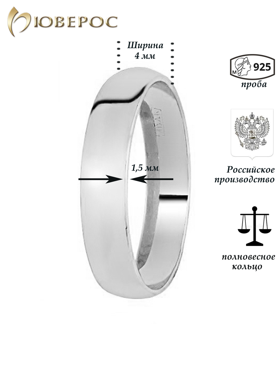 Классическое обручальное кольцо из серебра 925 пробы. Вес кольца 3 гр при средней цене 500 руб. Ширина 4 мм.Это обручальное кольцо пользуется спросом у любителей серебра. Кольцо покрыто родием для придания блеска и защиты от чернения. Стабильный спрос на эту модель можно объяснить низкой ценой и классическим стилем.